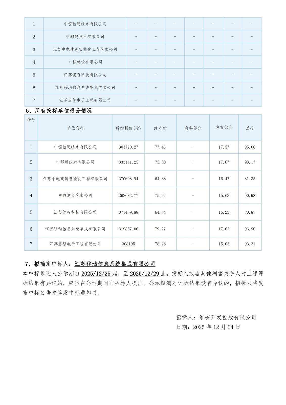 淮安開發(fā)控股有限公司南林大淮安校區(qū)公寓網(wǎng)絡改造工程評標結果公示